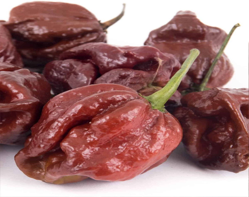 Superhot chili peppers go beyond habanero pepper heat and surpass 350,000 Scoville Heat Units. There are a number of varieties of superhot chili peppers and have recently topped over 2 Million Scoville Heat Units with the Carolina Reaper. Treat these peppers with respect as you cook with them. We did and came up with this super hot sauce ina a small 250g bottle.